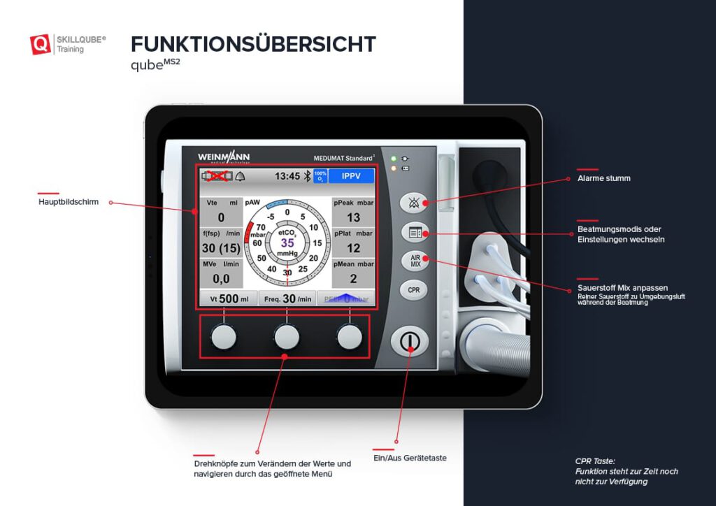 Der Beatmungssimulator qubeMS2 – Beatmungssimulator ergänzt die aktuellen Simulationsprodukte der qubeSERIE, zu welcher unter anderem EKG-Simulatoren auf Basis des C3, LIFEPAK15, X-Serie und DEFIGARD Touch7 zählen.